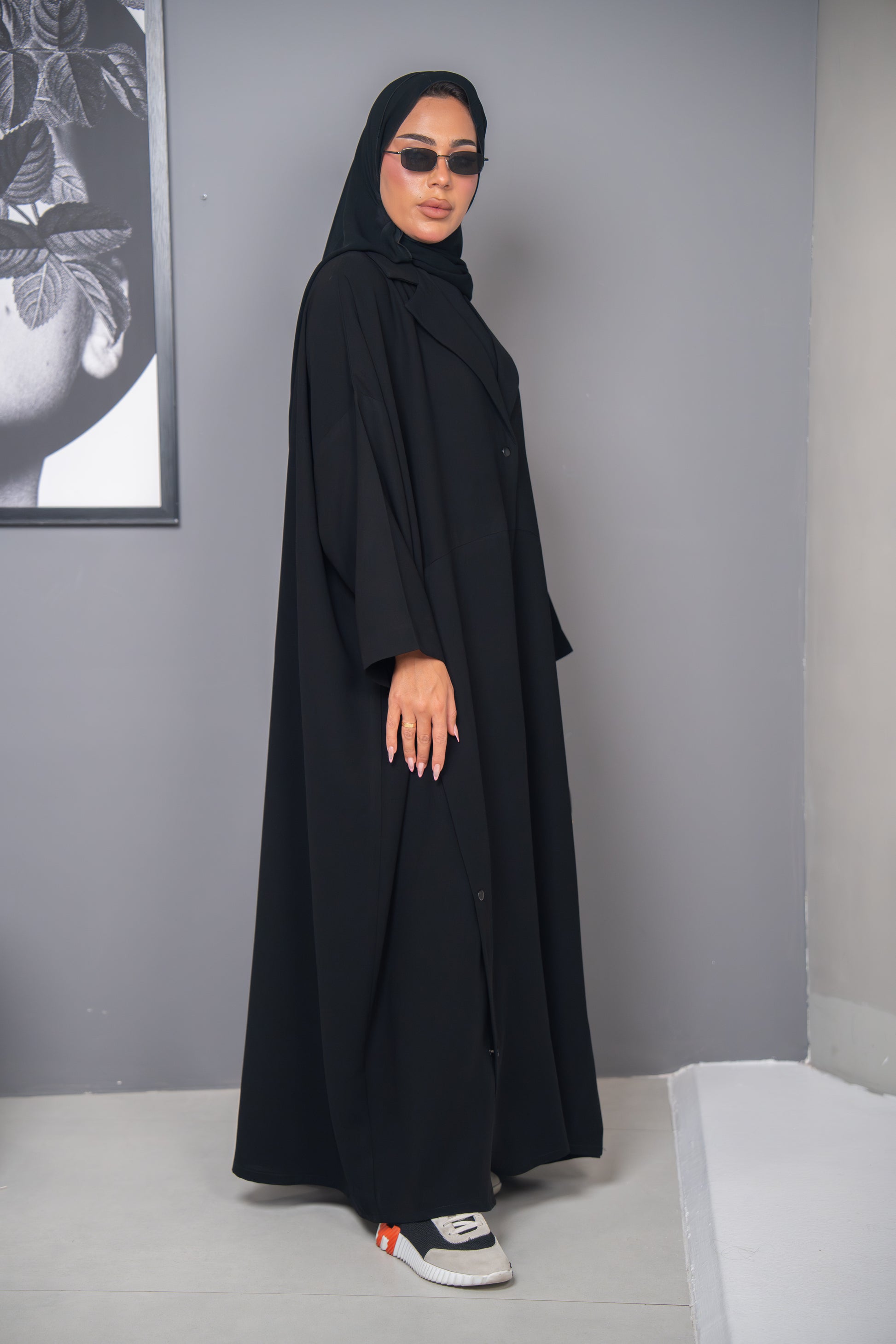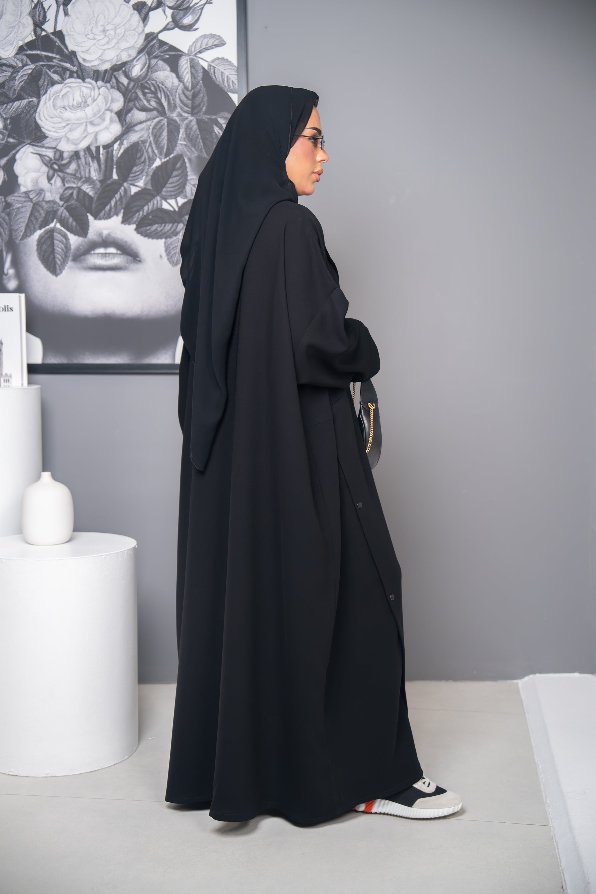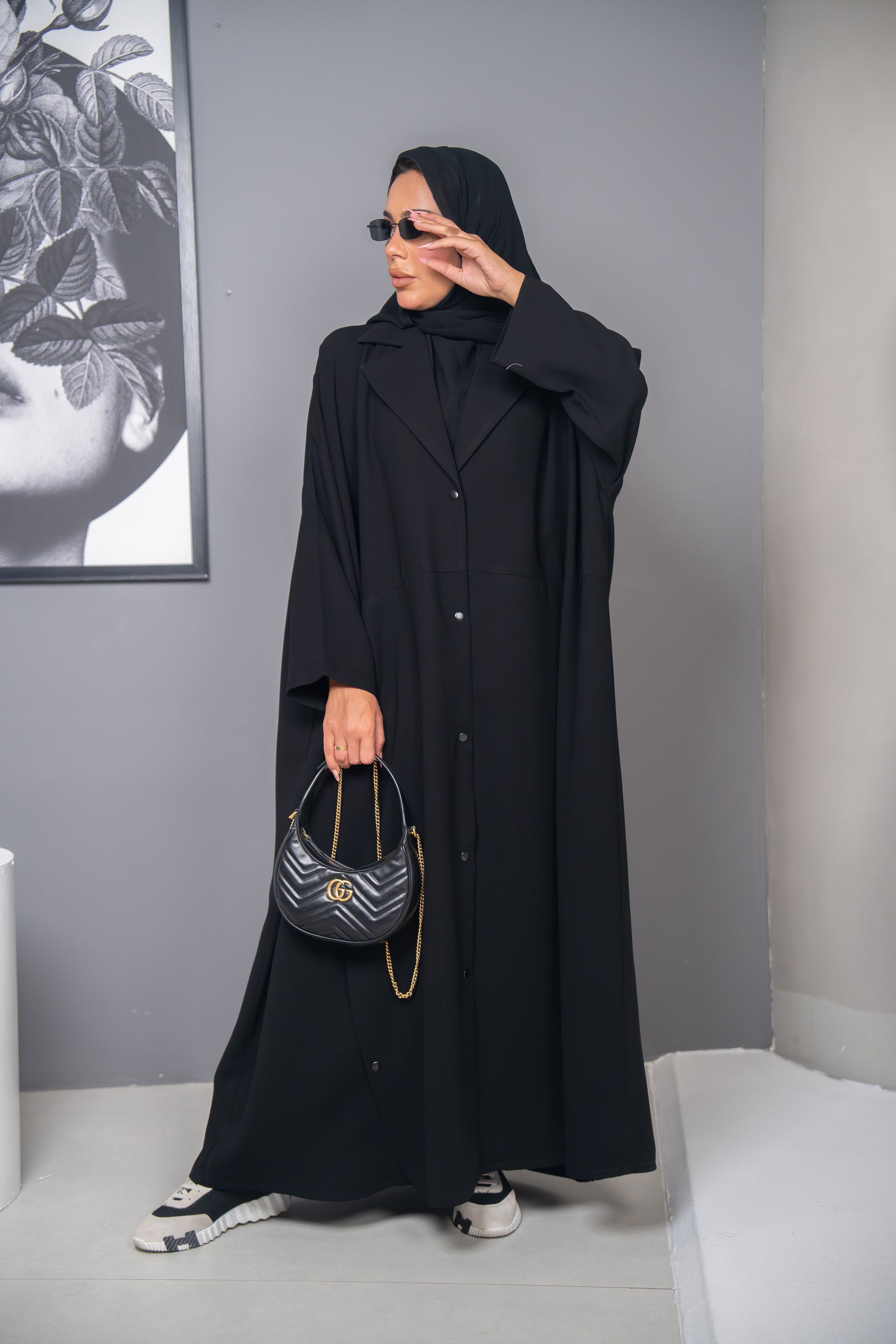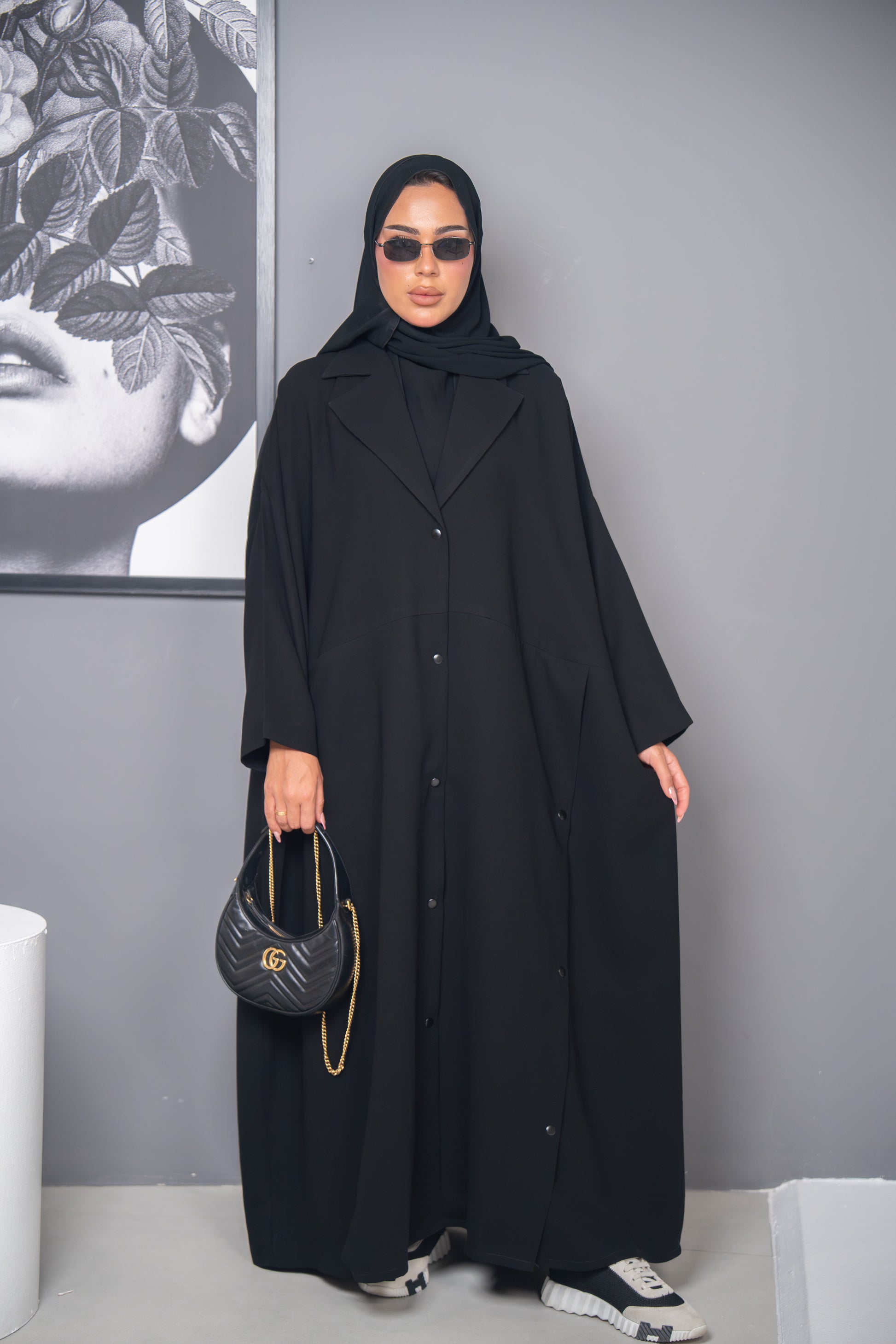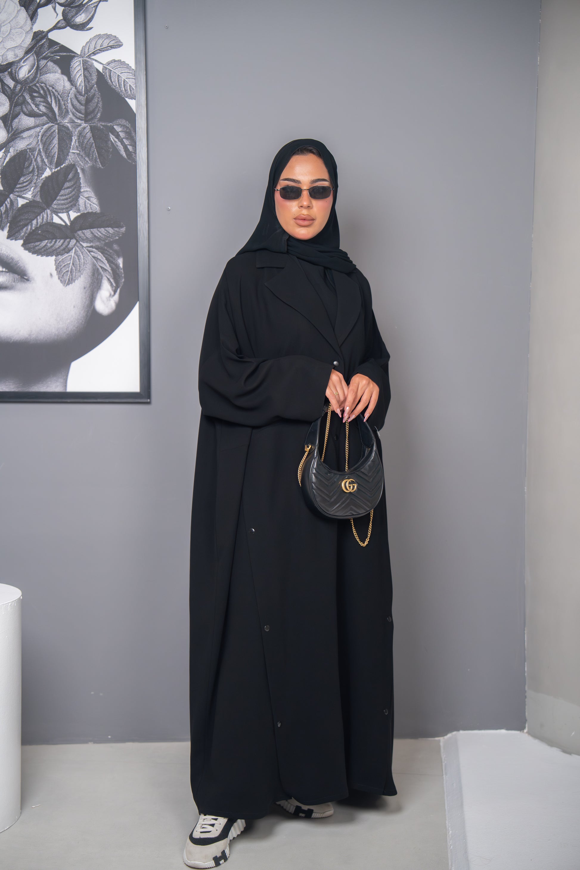 Elevate your everyday with the Nouran abaya — a modern icon designed in luxurious Crepe Cuba fabric, known for its smooth drape and breathable finish. Featuring tailored lapels, snap-button closure, and clean seam detailing, this abaya delivers elegance with quiet power. Nouran is your go-to choice for polished presence, whether at work or social gatherings. Pair it with heels or sneakers — the style adapts, but the elegance remains.